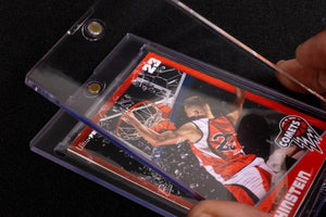 Show off your favorite sleeved trading cards with the ONE-TOUCH X card storage case! Designed as the final destination for your collectible trading cards, the ONE-TOUCH X features a bigger inner cavity to hold a standard-size collectible card of 35pt in thickness inside a protective sleeve (up to Platinum Sleeve Size #15221), so you never have to remove your collectible card from its protective sleeve to display it. Every holder uses UV-blocking additives to protect cards from harmful UV-rays, and is made with non-PVC materials to provide acid-free protection - ensuring your valuable hit retains its condition while under display.